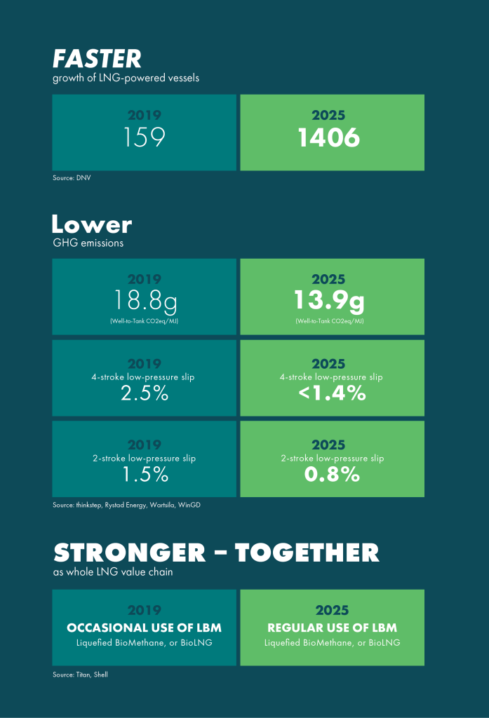 In the last 6 years SEA-LNG Members have been instrumental in the global growth of the LNG-powered fleet and the everyday use of biomethane as a marine fuel. This growth in cleaner, greener marine fuel been matched by technology improvements to cut GHG emissions from LNG.